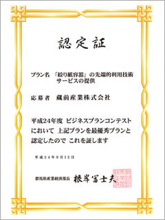 平成24年度 「ビジネスプランコンテスト」で最優秀プランに認定