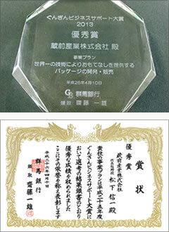 平成25年度「ぐんぎんビジネスサポート大賞」で優秀賞を受賞