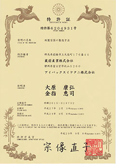 ↑ 特許・認定・受賞トップへ戻る発明の名称 紙製容器の製造方法 特許番号 特許第6204931号 登録日 平成29年9月8日 特許内容 紙製ブランクが、密度(0.50g/㎤~0.75g/㎤)の低密度紙で、金型で絞り成形され、絞り成形時のクリアランスが紙製ブランクの紙厚より小さく設定されることを特徴とする紙容器の製造方法です。(アイパックス イケタニ㈱と共同特許) -