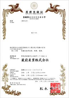 ↑ 特許・認定・受賞トップへ戻る登録商標 紙うつわ(標準文字) 登録番号 登録第6205589号 登録日 令和1年12月13日 登録内容 「紙うつわ」のブランド強化を目指し"紙うつわ"の標準文字が商標登録されました。今後は「紙うつわ®ブランド」とのブランドコラボレーションを展開してまいります。 -